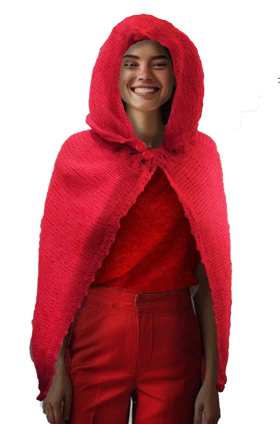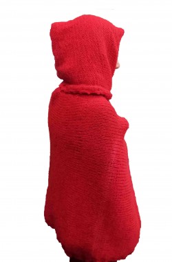 Mantello da Cappuccetto Rosso di maglia di lana con cappuccio staccabile