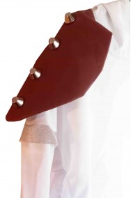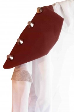 Questo abito per il carnevale include la tunica col cappuccio ed un grande spallaccio in ecopelle con borchie, bracciali, cinturone e i copristivali. Non include le armi, i coltelli ed i pantaloni.
