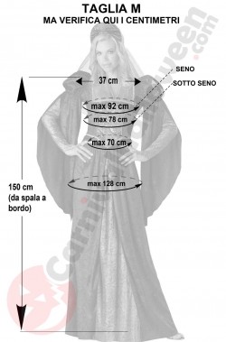 Il costume di Romeo e' in ampia taglia XL (ma controlla le misure nella foto in bianco e nero prima di comprare) ed include maglia pantaloni cintura sovrasacarpe e cappello mentre il costume di Giulietta e' disponibile in taglia M (ma anche qui controlla le misure nella foto in bianco e nero) ed include vestito e copricapo
