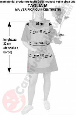 Vestito di carnevale prodotto in UE e non in Cina questo abito di carnevale da pippi e' composto dalla tunica con il grembiule unito e la grande tasca a pois in vita.