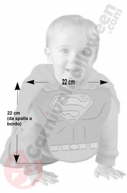 Ideale per un bimbo di eta' dagli 0 ai 9 mesi questo accessorio per vestire a carnevale il tuo bimbo da superman e ' molto simpatico, originale, comodo e veloce
