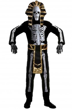 Fantastico pacchetto che abbiamo creato per te composto da una tuta da scheletro completa di guanti e dai paramenti da faraone, cappello e cintura.
