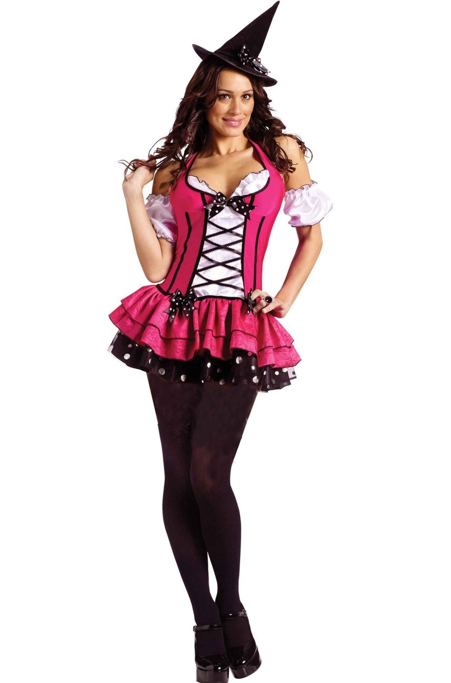 Ma quanto sarai bella con questo abito da strega ad Halloween? Il corpetto cross strings esalterà la tua silhouette, la gonna a balze la tua femminilità. Questo costume include l'abito, le mezze maniche a manicotto ed anche il copricapo da strega. Davvero un bel vestito per Halloween sexy che può diventare un altro personaggio cambiando accessori.