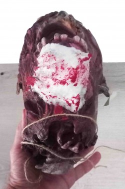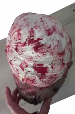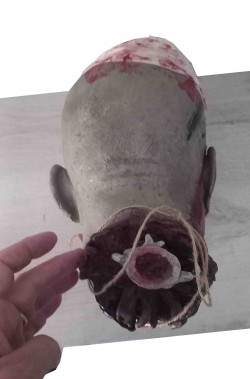 Se devi creare una scenografia con decorazioni Halloween spaventose questa e' una testa di morto zombie in lattice di dimensione naturale con lo sguardo orribile e perso nel vuoto. Ideale per decorazioni, la puoi appoggiare dove preferisci e finire con ragnatela finta. Una testa mozzata davvero inquietante, molto ben rifinita, ti aiutera' nella realizzazione di scenografie, vetrine, allestimenti per il tuo locale. Potrai renderla ancora piu' realistica con sangue finto liquido.