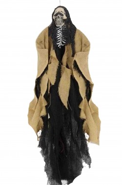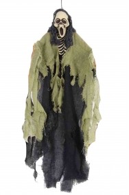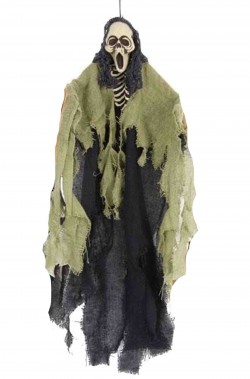Leggero per poterlo appendere ovunque facilmente. Un must per ogni allestimento o per una festa pirati che sia di un locale, di un bar o di una festa privata questa decorazione halloween da appendere e' uno scheletro da appendere vestito con un sudario arancione.