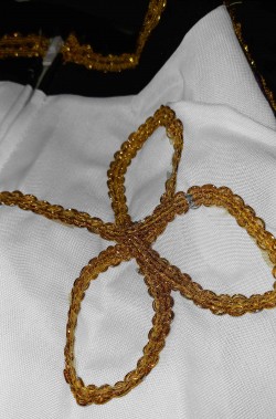 Questo costume a divisa di gala elegante include la giacca bianca con le mostrine sulle spalle e gli alamari sul torace, i pantaloni e la cintura.