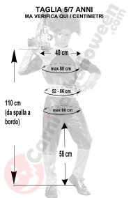 Include tuta intera, cintura, parrucca questo costume di carnevale bambino da guerriero dello spazio che potrai completare a piacere.