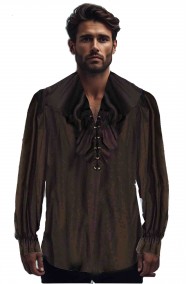 Con questa camicia nera con lo jabot potrai completare non solo costumi da pirati ma realizzare anche un abito da popolano medievale usarla come una camicia da spadaccino o cavaliere dei tempi di Cyrano, di Alatriste, di Jack Aubrey di Master and Commander o di ogni personaggio letterario o del cinema storico.