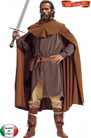 Include il cappuccio medievale con la mantellina, la tunica di tessuto goffrato con la chiusura con la stringa di cuoio come usava nel medioevo, il pantalone di un bel tessuto elastico ad effetto scamosciato, l'enorme mantello medievale di tessuto goffrato, i copristivale di finta pelle ed il cinturone di cuoio con il tascapane portamonete questo stupendo costume cosplay medievale realizzato con tessuti spessi e comodi. Perfetto come costume per rievocazioni storiche (attenzione: NON E' realizzato con tessuti d'epoca sebbene le trame dei tessuti usati siano bellissime) perche' grazie all'ampiezza dei tessuti che sono pure elasticizzati si adatta facilmente a differenti corporature. Ideale come costume di Marco Polo o di un qualsiasi personaggio del medioevo oltre che, naturalmente, come costume fantasy.