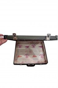Questa valigia di cartone e' perfetta come valigia dell'emigrante impellicciato verde e' di dimensione 52 x 42 x 11 cm ed e' un perfetto oggetto di scena per film e video a tema periodo della seconda guerra mondiale.
