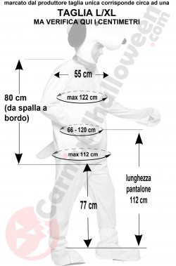 Attenzione: taglia unica non significa che lo stesso costume vada bene per Stanlio e pure per Ollio. Significa che il produttore non produce questo prodotto in taglie differenti bensì in un'unica taglia che dovrebbe vestire la maggior parte delle persone. Per le misure precise controlla la foto in bianco e nero qui nella scheda prodotto, misurati e confronta i tuoi centimetri con quelli.