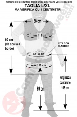 La taglia e' ampia ed ha una buona vestibilita' quindi veste da una M ad una XL ma non ti fidare: misurati e confronta i tuoi centimetri con quelli della foto in bianco e nero sotto alla foto principale in questa pagina