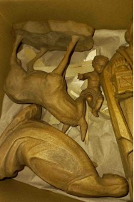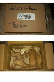 Straordinaria nativita' scolpita a mano in legno originale trentina altoadige. Questa nativita' del Presepe include statuine in legno altezza max 16 cm (san Giusppe) mentre il bambinello è 8 cm.