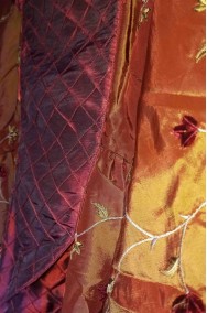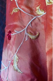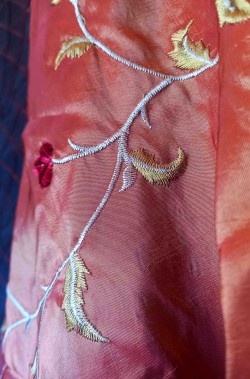 Di un affascinante color rosso ramato, il tessuto e' molto ben rifinito e consente l'uso di questo vestito anche per un matrimonio a tema oltre che per una serata di gala in un palazzo al carnevale di Venezia o alla Reggia di Venaria durante una delle Nuit Royale.