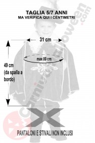 Il prodotto e' comodissimo perche' include la bella tunica blu con la grande croce ed il colletto bianco col bordi di pizzo. Potrai quindi vestire il tuo bambino da moschettiere con i suoi vestiti di tutti i giorni così, anche se fa freddo a carnevale, potra' coprirsi sotto senza rovinare l'estetica della uniforme da moschettiere