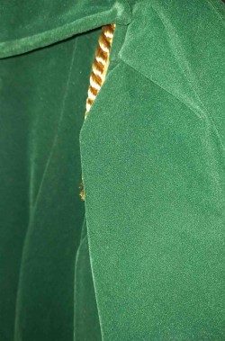 Il costume di Rossella O Hara in taglia M e' la replica del famoso vestito verde fatto con le tende della tenuta di Tara. Il costume di Rhett Butler e' in taglia L/XL ed e' composto dalla marsina senza code ovvero la giacca lunga a due terzi grigia fumo di londra con patelle, polsi e colletto risvolto neri in vellutato nero lucido, il gilet in tessuto vellutato nero lucido ed il pantalone.