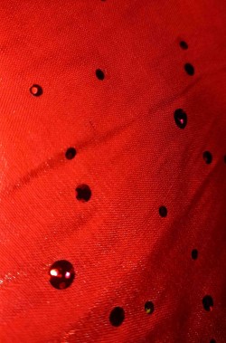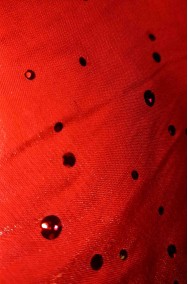 Di tessuto decorato con mille lustrini questa mantellina ti servira' per completare rapidamente il tuo costume di cappuccetto rosso fai da te.
