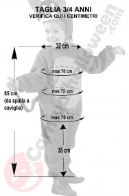 Disponibile in un'unica taglia, 3/4 anni, ti raccomandiamo però di verificare i centimetri nella foto in bianco e nero perche' il tessuto non e' elasticizzato