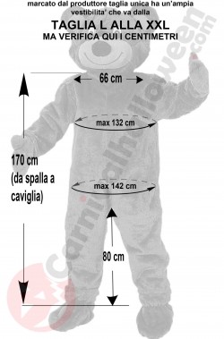 ATTENZIONE: ESSENDO UNA MASCOTTE A TUTTA TESTA, PER EVIDENTI MOTIVI IGIENICI E SANITARI NON E' CONSENTITO IL RESO DEL PROOTTO. IL COSTUME VERRA' MISURATO ESATTAMENTE UNA VOLTA EFFETTUATO L'ORDINE PRIMA DI SPEDIRE PER CONSENTIRE AL CLIENTE DI MISURARSI CON CURA E VERIFICARE LA VESTIBILITA'.