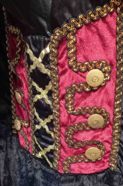 Bellissimo vestito di carnevale da donna da Piratessa dei Caraibi Angelica de luxe. Guarda nella seconda foto come il corpetto sia finemente lavorato ed elegante cosa che rende questo abito di carnevale da corsara una base perfetta per costruire un vestito a tema da dama del 1700