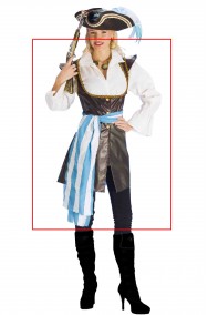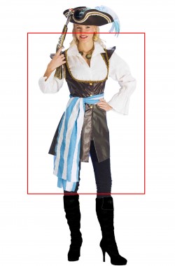 Un costume da pirata donna da indossare con i tuoi pantaloni di tutti i giorni o con un paio di leggins per il massimo comfort. La qualita' dei tessuti rende questo costume perfetto per personale di sala, bar, stand, agenzie di eventi.