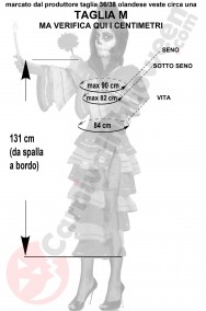 Una sposa perfetta per danzare alla notte dei morti insieme alle anime dei cari ritornati per una sera vicino a noi come nella tradizione sudamericana. Con un bel trucco da calavera o calaverita, il teschio di zucchero, diventerai la piu' bella della serata e potrai riutilizzarlo come abito da ballerina.