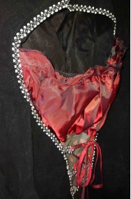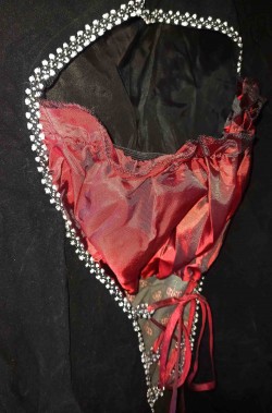 Per esempio può diventare un perfetto costume da vampira dei tempi di Lestat e di Intervista col vampiro perche' l'abito ha le spalle a palloncino e la parte sul seno di un color rosso porpora sangue che lo rende adattissimo ad una trasformazione in un costume di Halloween da donna.