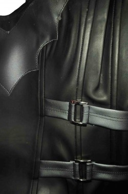 Include i pantaloni, il corpetto con il logo del pipistrello applicato e le fibbie in metallo che si chiude sulla schiena con la cerniera ed il coprispalle con le maniche con il mantello da Batman.