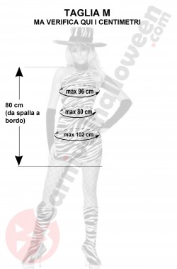 Include il vestito a strisce bianconere, il grande cappello da pimp, i copristivale zebrati ed i guanti senza dita neri questo vestito zebrato anni 60 da donna bianco e nero. Per una volta invertiamo i ruoli. Chi l'ha detto che il pappone deve essere sempre lui? Una novità ultra sexy e divertentissima. E se sei una tifosa della Juventus, è perfetto per lo Stadium! Tutti ti fotograferanno e sicuramente finirai ripresa in TV.