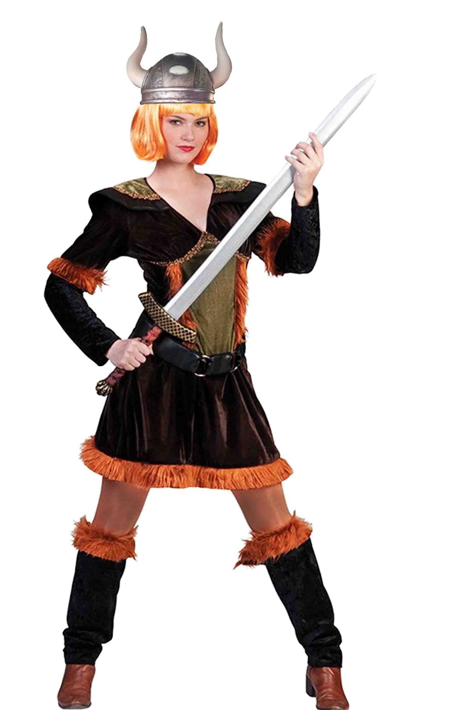 Davvero di ottima fattura e qualita', di un bel tessuto molto ben rifinito, include la giacca lunga con gli spallacci in finta pelle ed il bordo e gli inserti di pelliccia sintetica, la cintura ed i copristivale con il bordo della stessa pelliccia sintetica della giacca questo costume da vichingo donna pronta per scatenarsi come una guerriera.
