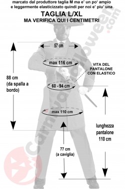 Il tessuto, sufficientemente robusto, e' leggermente elasticizzato e rende il vestito utilizzabile anche per spettacoli teatrali, recite, video e film.