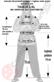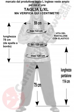 Questo vestito di carnevale da cinese include la camicia rossa in poliestere con ideogrammi stampati, i pantaloni neri con elaastico in vita, il cappello a zucchetto nero come un vero cinese shaolin e la cintura.