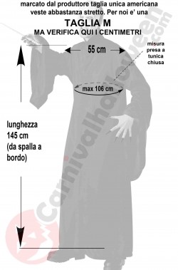 Costume di Halloween di Voldemort dal film Harry Potter. Include la tunica e la maschera da Voldemort senza naso che copre a calotta la parte superiore della testa e meta' viso, naso incluso. Le orecchie restano invece comodamente libere.